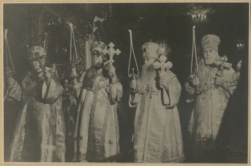 From left to right: Archbishop Herman (Aav), Metropolitan Aleksander (Paulus), Metropolitan Augustīns (Pētersons), and Archbishop Nikolai (Leisman) perform together at Bishop Pavel (Dmitrovskii’s) consecration, 3 October 1937 (EAA.5355.1.337.169)